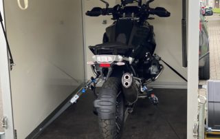 KFZ-Koffer Motorradanhänger mit Hydraulischen Absenken, ermöglicht Ihnen ein einfaches Be- Entladen auch von schweren Motorrädern, durch die rutschfesten Wippen stehen die Motorräder Sicher und können von nur einer Person an den zahlreichen verstellbaren Ösen verzurrt werden